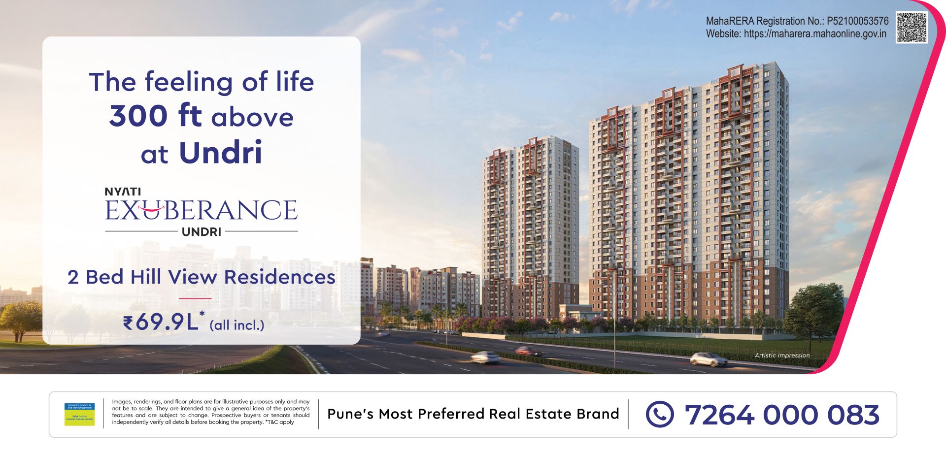 Nyati Exuberance is an integral part of Nyati County spread across 210 acres, offering a green haven adorned with 70% open spaces and breathtaking views of the Sahyadri hills.